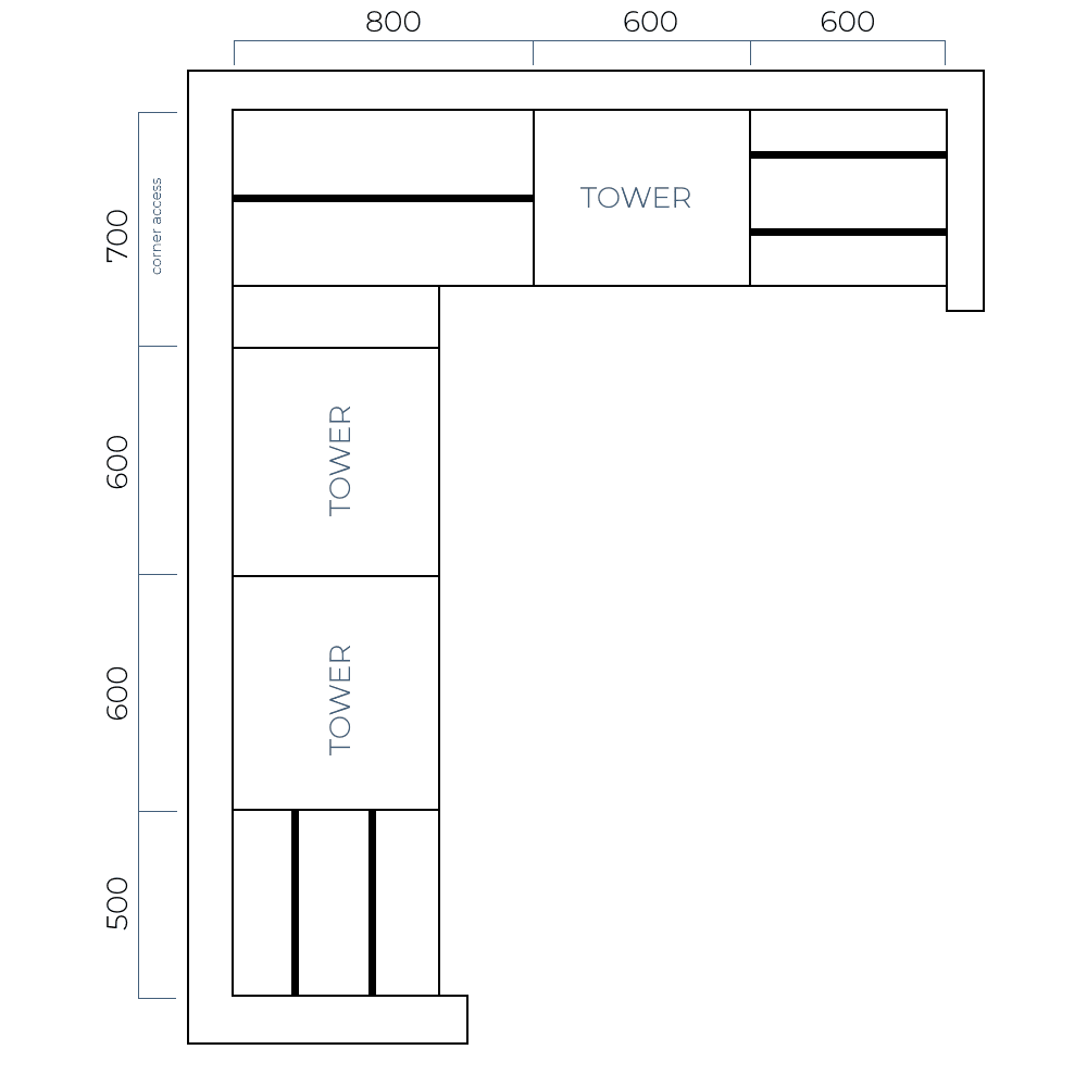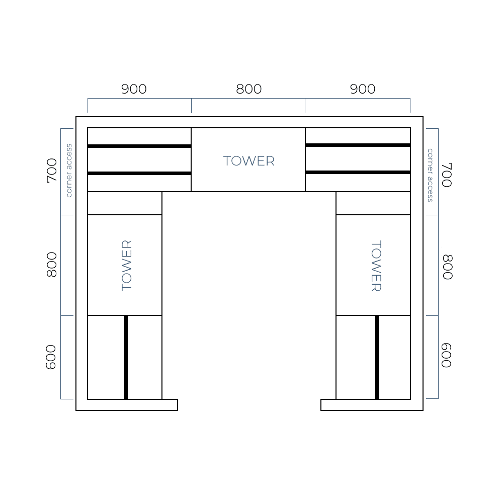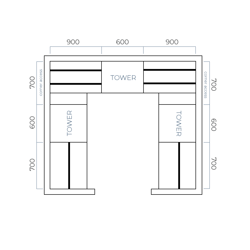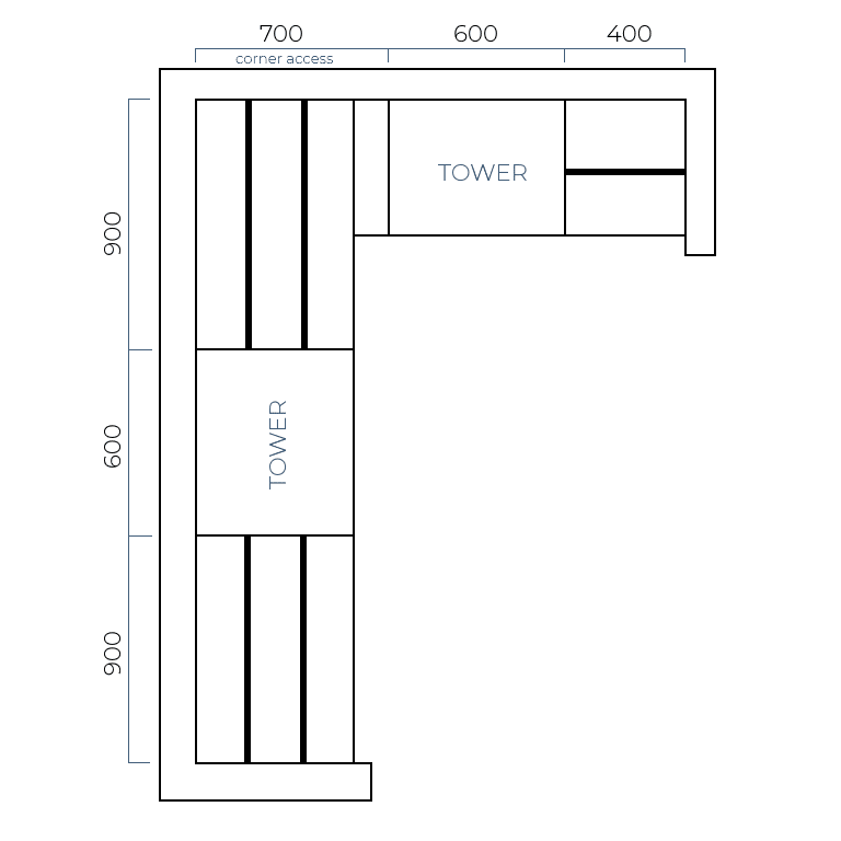 Now is the fun part…it’s time to plan your layout! Our modular tower units are standard sizes, and our hanging rails and top shelves are supplied oversized for customisation. What’s great about this is you choose where you place the tower/s and hanging rails. You can even install the hanging rails at any height.