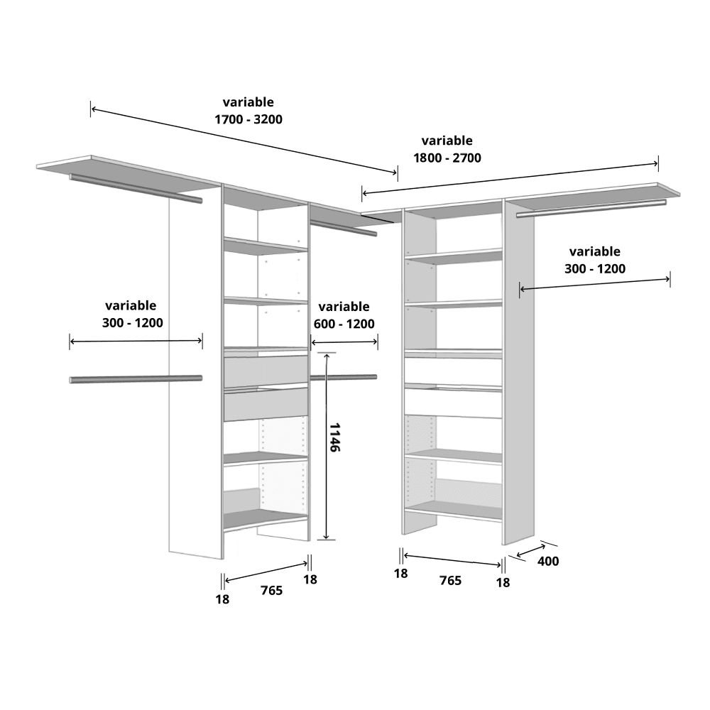 Suitable for Walk-In Wardrobes with 2 adjoining walls