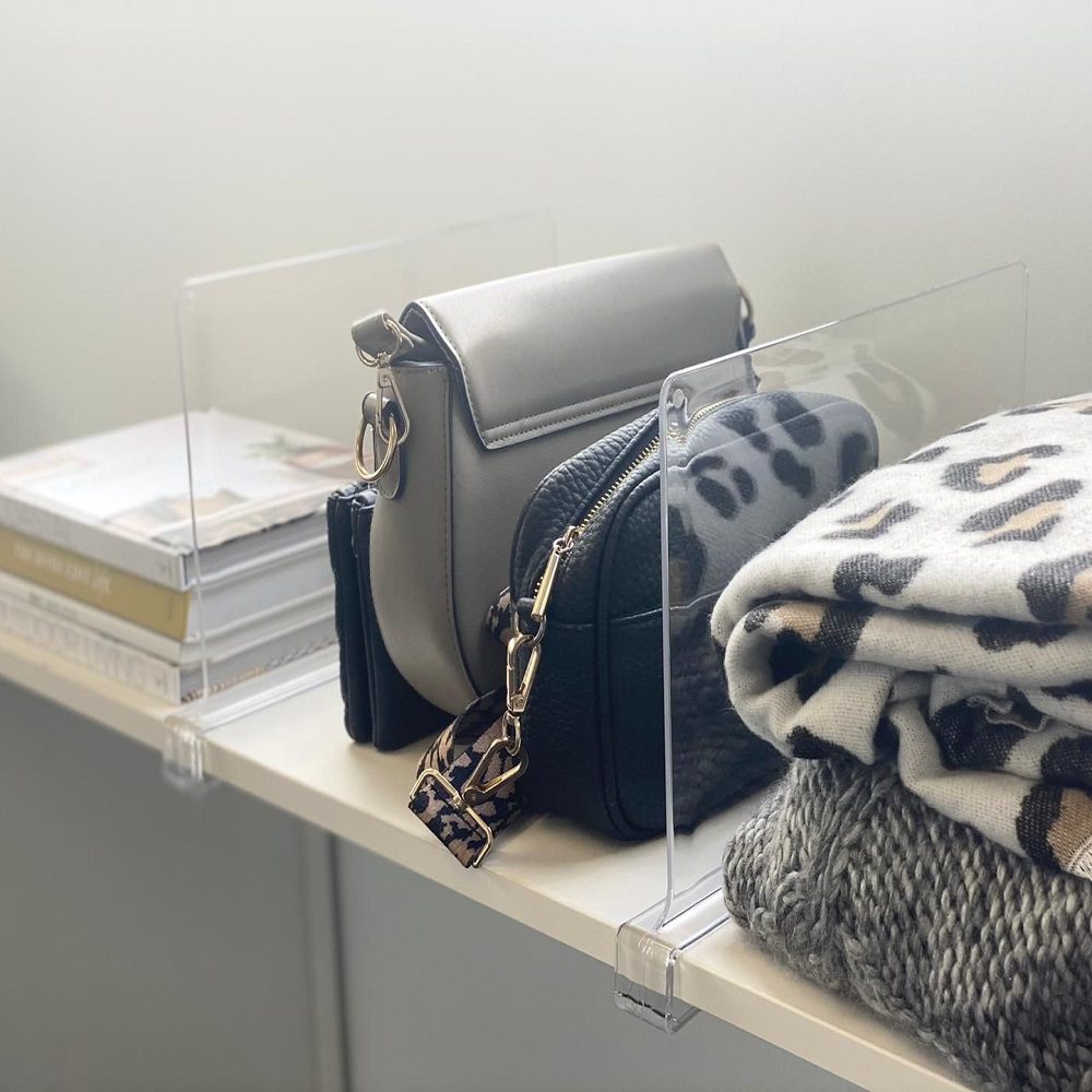 Overall, the Clear Acrylic Shelf Divider is a must-have organizer. It\’s user-friendly, stays in place, and separates items with ease. Say goodbye to messy shelves and hello to effortless organization. Highly recommended!