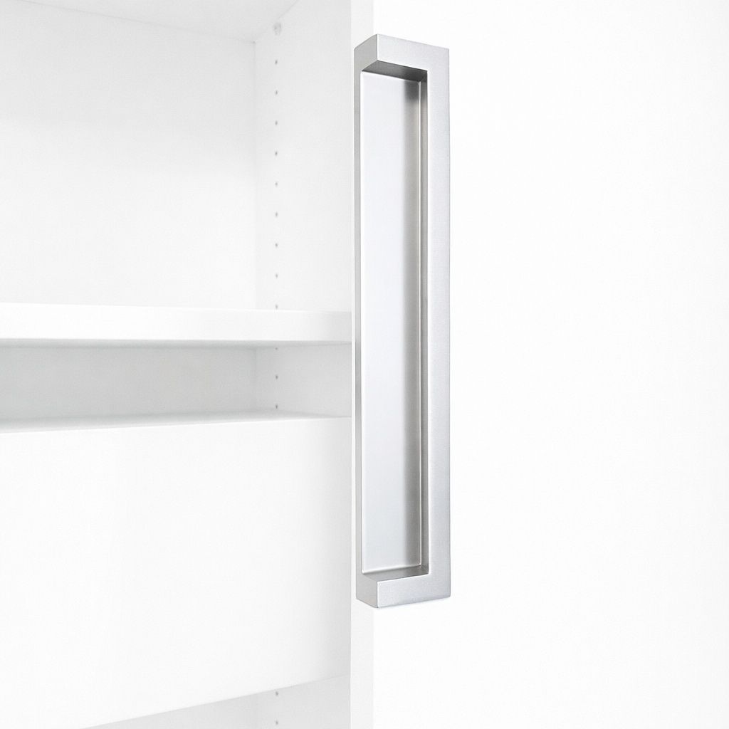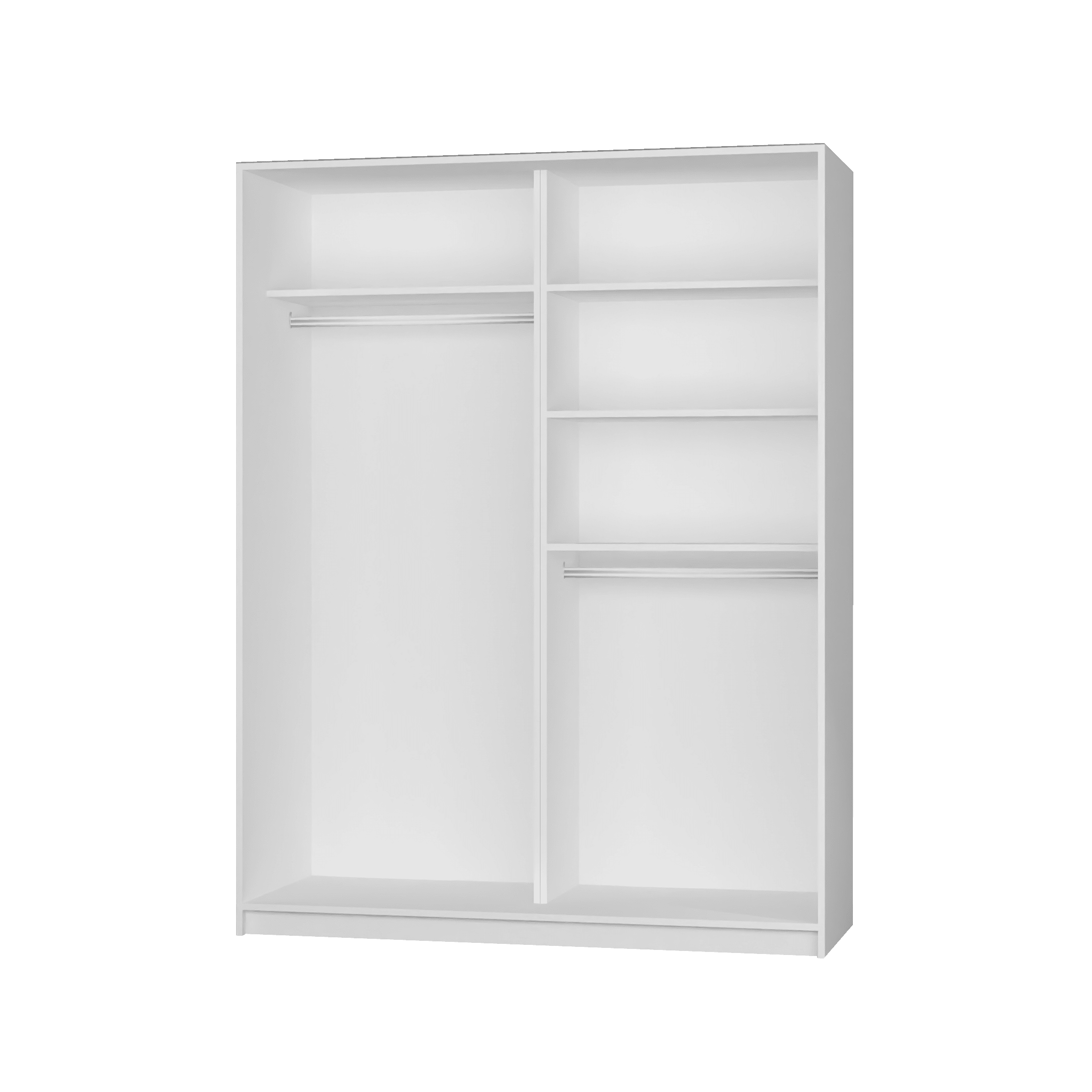 Introducing the Large Absolute Wardrobe – White Doors, a versatile and convenient self-assembly kitset wardrobe solution. This freestanding complete wardrobe system features shelves and hanging spaces, providing ample space for organising your belongings. Space-saving sliding doors complete the look of this unit with modern frameless white melamine panel doors that are built to go the distance. Crafted with durable White Melamine, this wardrobe combines functionality and style. A perfect solution for bedrooms without built-in wardrobes, or as an extra storage unit in any room. Experience the satisfaction of assembling and customising your bedroom with the Large Absolute Wardrobe – White Doors, designed to meet your storage needs while adding a touch of elegance to your space.