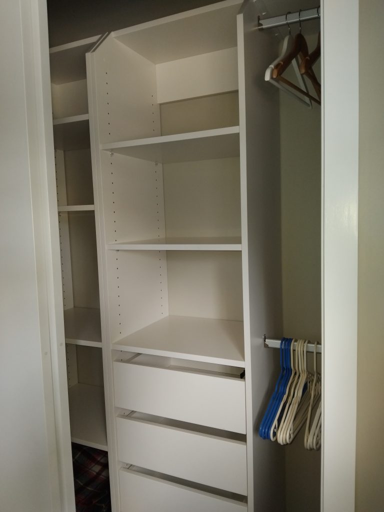 Easy to assemble and I was able to change the layout without any trouble. I joined the two tall units together and had a double hanging rail at one end of the units, not both ends.