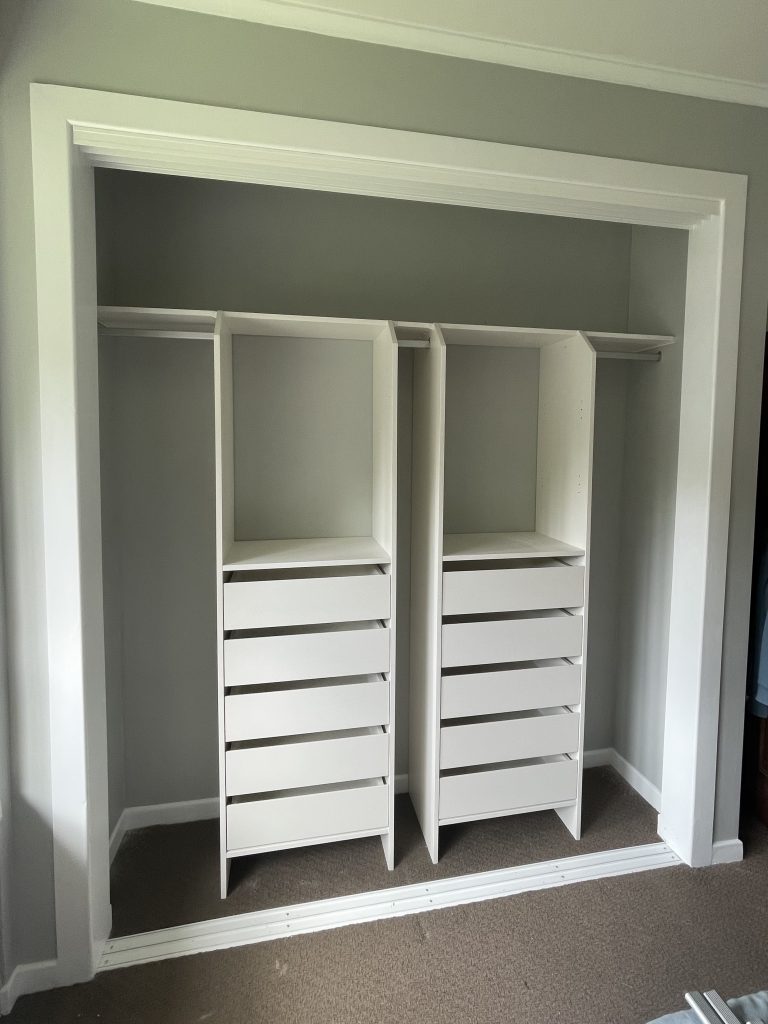 The Tasman 600 was a great product. Communication for delivery and timeframes was excellent. All the pieces were provided and lots of spares if need be. We installed this ourselves in an afternoon as well as the sliding doors. The materials were good quality. The soft close drawers are particularly nice. We had a 2m cavity width, and so maximised the side hanging areas, but enough for some full length dresses in the middle. Strongly recommend Wardrobes Online.