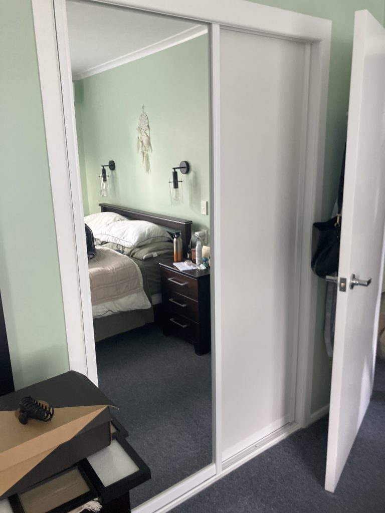 1x Mirror Door & 1x White Melamine Door on Double Track